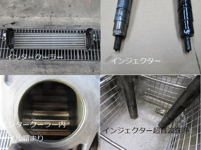 インテークマニホールド・EGRクーラー・吸気シャッターバルブ清掃及び超音波洗浄・吸気ポート煤除去・DPF強制燃焼・インジェクターデータ・各所エラーコードリセット